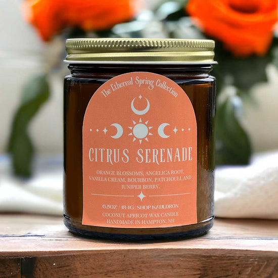 Citrus Serenade is a gorgeous complex scent that marries green notes of orange tree leaves, orange blossom, angelica root, patchouli, juniper berry and gourmand notes of vanilla extract, buttery pound cake, bourbon, and vanilla cream. Citrus Serenade is perfect brightening up any space.