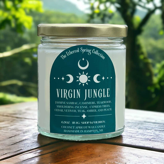 Virgin Jungle features luxurious coconut apricot wax. Coconut apricot wax is a FDA approved creamy, buttery blend of coconut oil, apricot wax, and a tiny bit of food grade paraffin.